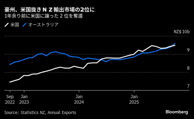 豪州、米国抜きニュージーランド2位の輸出先に-貿易の流れ変化