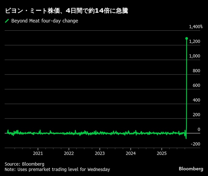 ビヨンド・ミート株価が上げ拡大、4日間で約14倍増の勢い