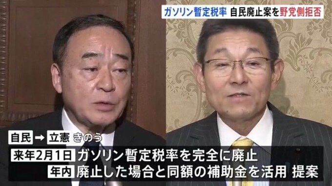 ガソリン暫定税率 自民提案の「来年2月廃止」案を野党側は拒否