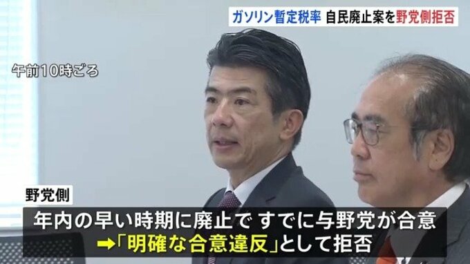 ガソリン暫定税率 自民提案の「来年2月廃止」案を野党側は拒否