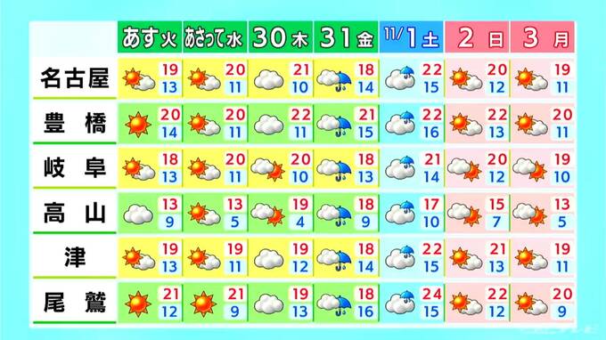 きょうの東海地方は洗濯日和 風には注意を 飛騨北部や三重県北中部では雨予想も 愛知…