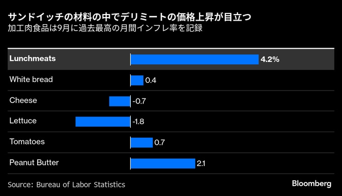 3. 米国の加工肉価格、過去最大の上昇を記録-サンドイッチに値上げ圧力