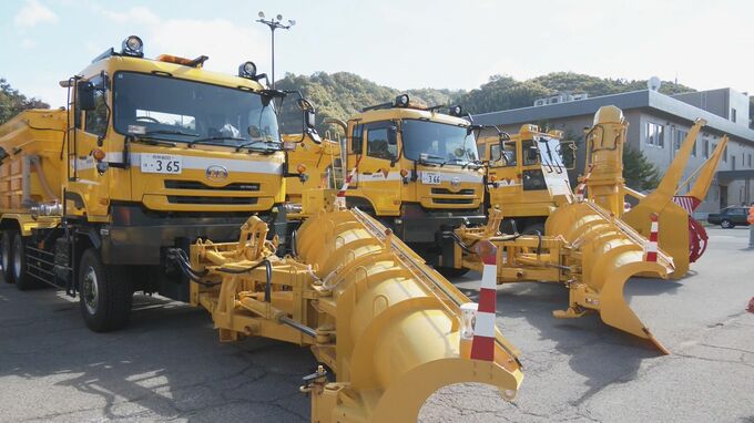 東海北陸道で本格的な雪シーズン前に除雪車両の出陣式 担当区間には全国の高速道路…