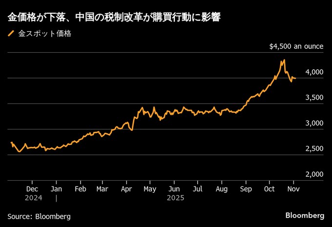 中国、金販売の税優遇措置を撤廃-購入価格押し上げの可能性