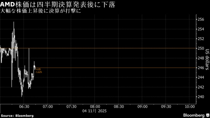 米AMD株、時間外取引で3%安-売上高見通しが予想レンジ上限に届かず