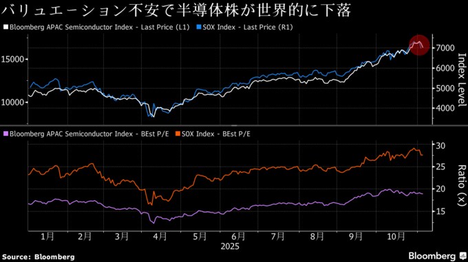世界的な半導体株売り、サムスンやSKに波及-時価総額76兆円一時消す