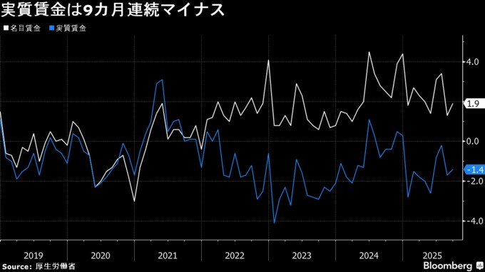 3. 9月の実質賃金は9カ月連続マイナス、名目増加でも物価高止まりが重荷