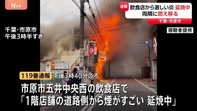 千葉・市原市の飲食店で火事 両隣にも燃え移り消火活動中 けが人や逃げ遅れは確認…