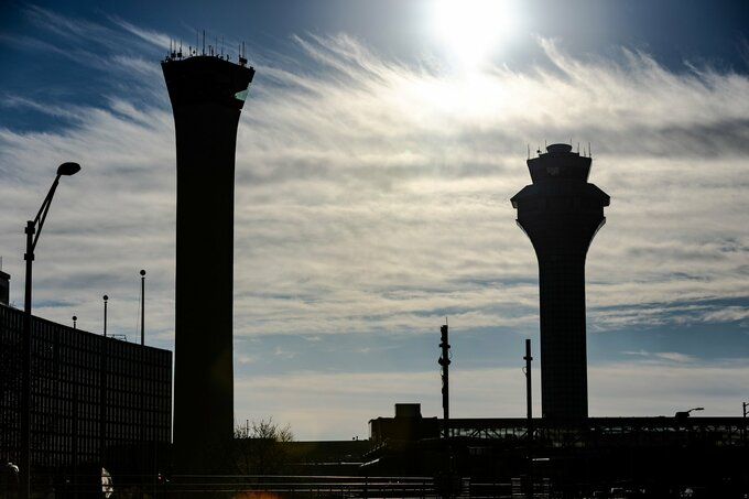 シカゴのオヘア国際空港に並ぶ管制塔(7日)