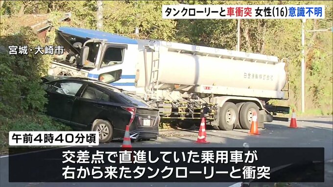 乗用車とタンクローリーが衝突 乗用車に乗っていた15歳から19歳の男女5人病院搬送…