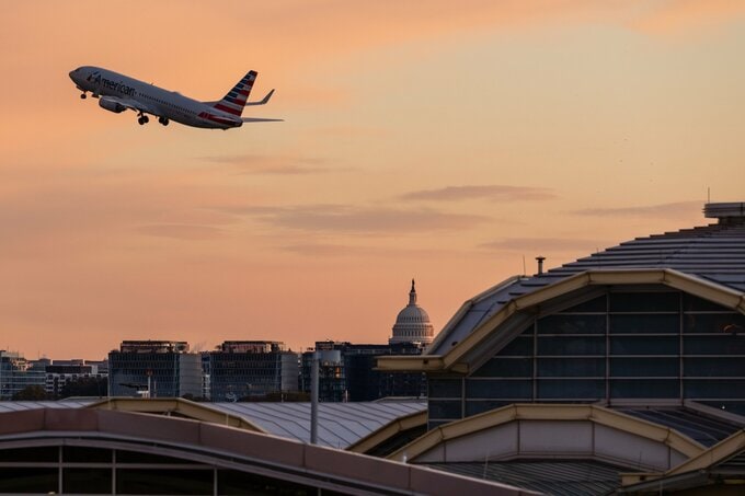 バージニア州のロナルド・レーガン・ワシントン・ナショナル空港を離陸するアメリカン航空機