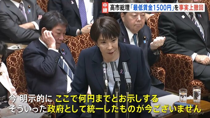 【速報】高市総理が石破政権の最低賃金目標を事実上撤回 「2020年代に全国平均1500円」を明示せず