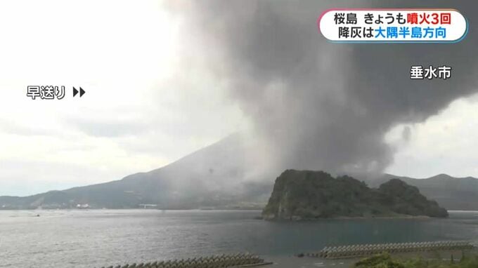 桜島 18日も断続的に噴火 灰は垂水市、鹿屋方向にも 鹿児島