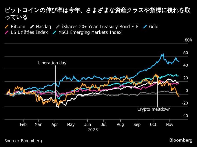 ビットコイン、今年のピークから約30%下落-全資産クラスに後れ取る