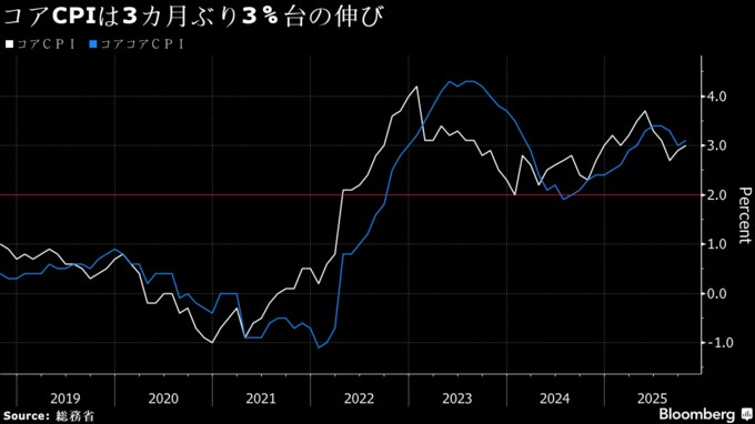消費者物価は3カ月ぶり3%台乗せ、食料品高止まり-日銀正常化の支え