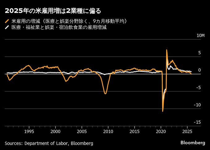 米雇用の伸び、2業種に偏る-医療・福祉と娯楽・宿泊飲食除けば減少