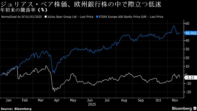 ジュリアス・ベアが通期減益予想、不動産融資で1.5億フラン引き当て