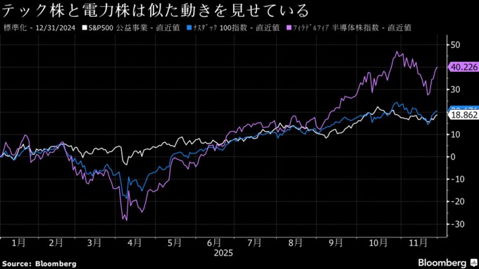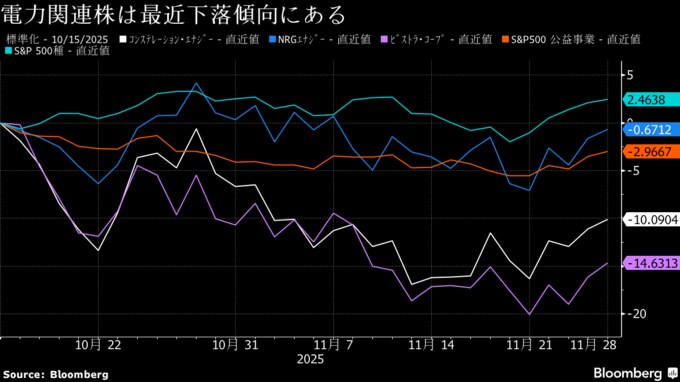 電力関連株にAIブーム期待の反動-期待外れのデータセンター計画