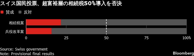 超富裕層への相続税50%案、スイス国民投票で否決-富豪移住懸念が影響