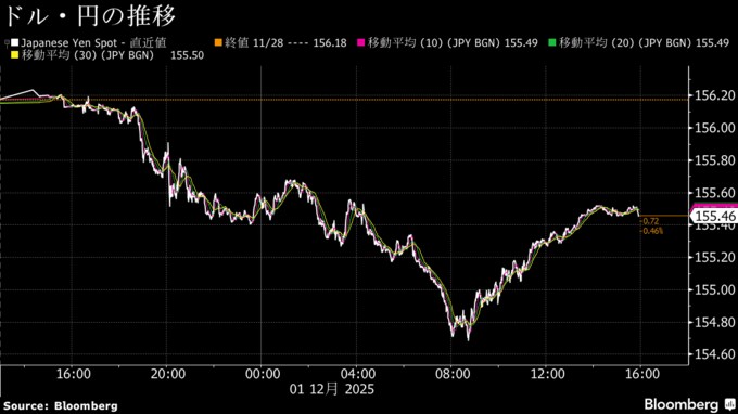 【米国市況】円上昇、日銀利上げ観測で一時154円67銭-国債・株は下落