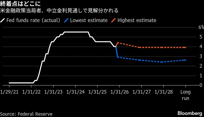 FRB当局者、中立金利見通しで異例の大分裂-利下げ論議にも影響