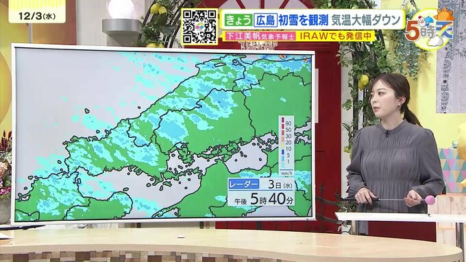 【あす12/4(木)広島天気 】雪のピークは明け方まで 朝は路面凍結に注意 北部市街地や南部郊外も積雪の可能性