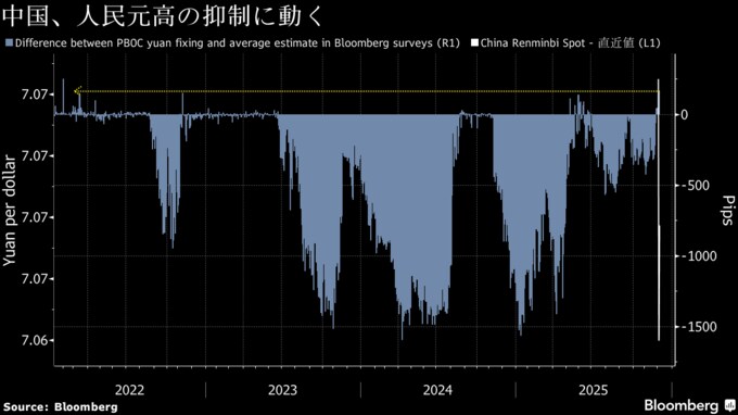 中国、人民元高抑制する姿勢示唆-2022年以降で最も強いシグナル
