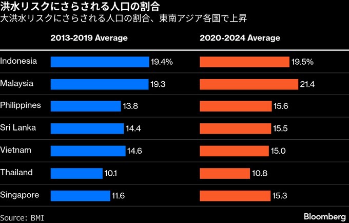 アジア各地の洪水で死者1300人超、被害3.1兆円-気候変動リスク鮮明