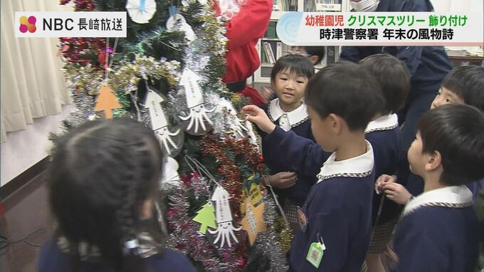 警察署のクリスマスツリーを幼稚園児が飾り付け 防犯や交通安全の意識付け兼ねた年末の恒例行事【長崎】