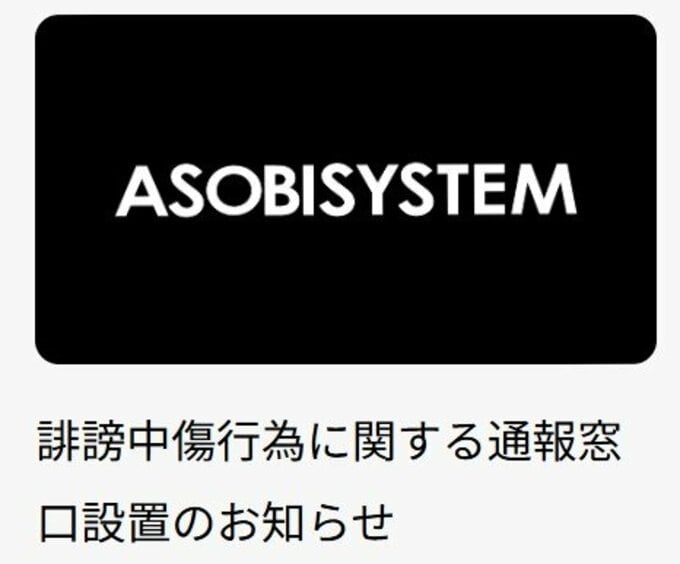 【アソビシステム】ネット上の誹謗中傷行為に関する通報窓口を設置「法的措置を含む…