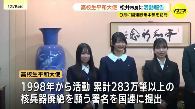 「同じ思いの方が国を超えていると確認できた」 高校生平和大使が広島市長に活動報告 9月に核兵器廃絶の署名を国連に提出