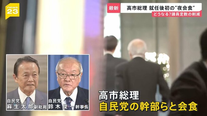 高市総理 就任後初の“夜会合” 党の幹部らと国会対応など意見交換か 一方で与党提出の定数削減法案は「あまりに乱暴」野党が反発【news23】
