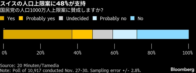 スイス人口1000万人上限案への支持48%、移民抑制巡り世論二分-調査