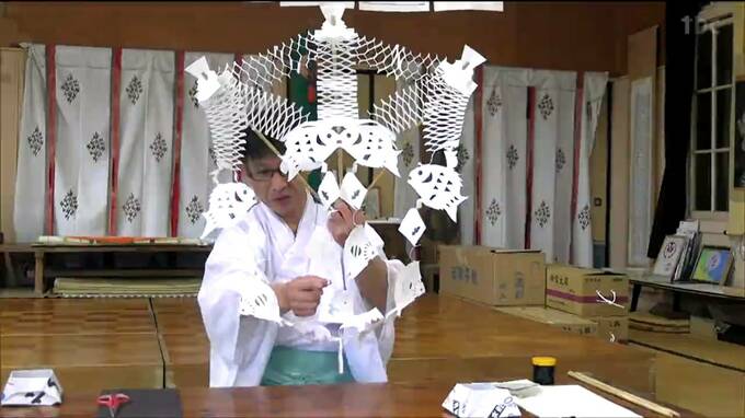 南三陸町の神社で正月飾りの「きりこ」制作が最盛期