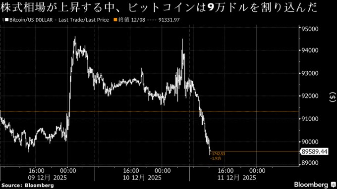 3. ビットコイン9万ドル割れ、米利下げで株高も心理改善せず