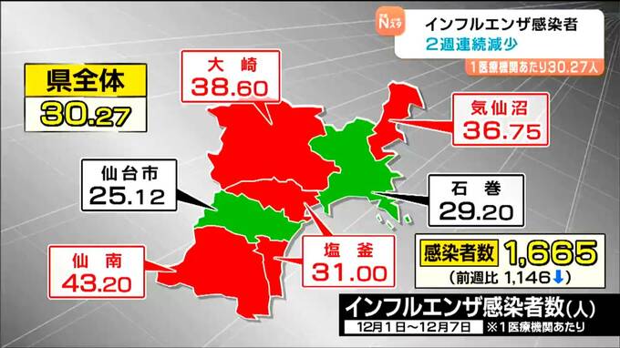インフルエンザ感染者 2週連続減少も警報継続 患者の7割が14歳以下の子ども 宮城