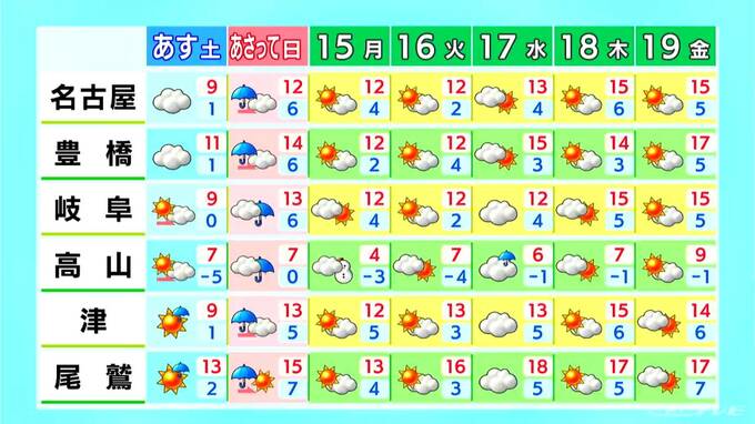 東海地方はあす夜から雨が降り出す所も 日曜は午前中を中心に広く雨 愛知・名古屋・岐…