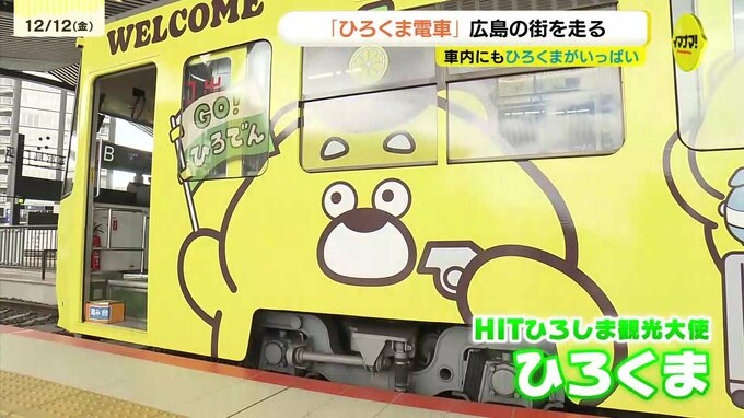 車内も車外も "ひろくま"がもりだくさん!広島の街を走る「ひろくま電車」をお披露目