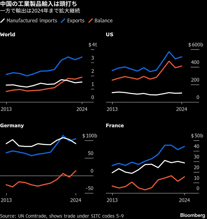 中国と欧州が対立必至、貿易不均衡が急拡大-「耐え難い」と仏大統領