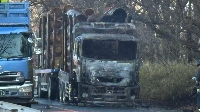 【渋滞】熊本県南小国町 国道212号 木材を積んだ大型トラックが焼ける