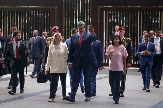 マドゥロ大統領(中央)とロドリゲス副大統領(右)(カラカスにて、2024年7月31日)