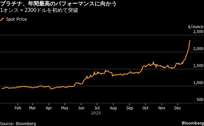プラチナが過去最高値、初めて1オンス=2300ドル突破-10営業日続伸