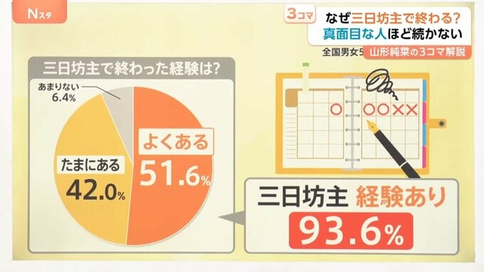 ついに発見したかも?「三日坊主の脱出方法」真面目な人ほど続かない…継続のコツは自分に優しく【Nスタ解説】