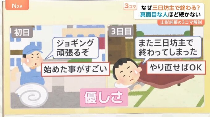 ついに発見したかも?「三日坊主の脱出方法」真面目な人ほど続かない…継続のコツは自分に優しく【Nスタ解説】