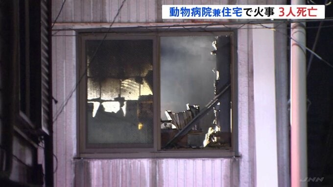 「3階から黒煙が」動物病院兼住宅で火事 男女3人が救助も死亡確認 高齢の院長ら3…