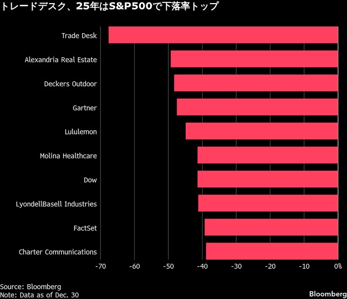 2025年米国株の勝ち組と負け組、AI銘柄の好調続く-消費関連は苦戦