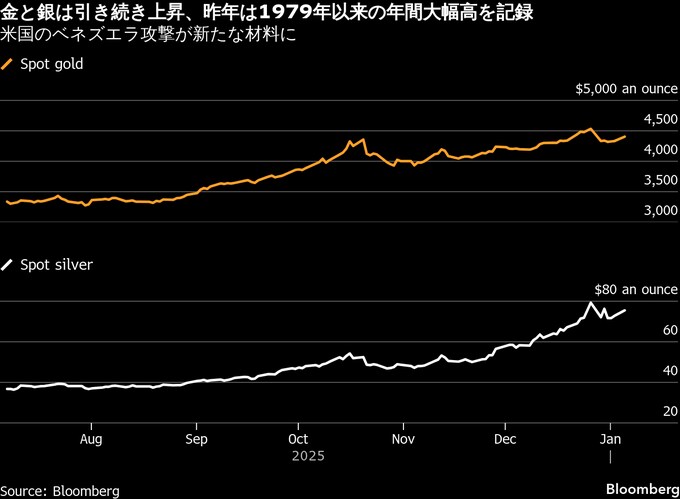 金・銀が上昇、ベネズエラ情勢緊迫で地政学リスク高まる