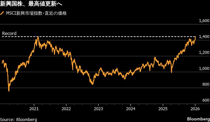 新興国株、最高値更新の方向-アジアのテクノロジー株好調が追い風