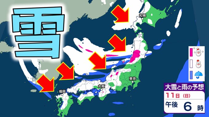 【大雪情報】成人の日・12日頃にかけて日本付近に強い寒気「10年に1度レベル」大雪…