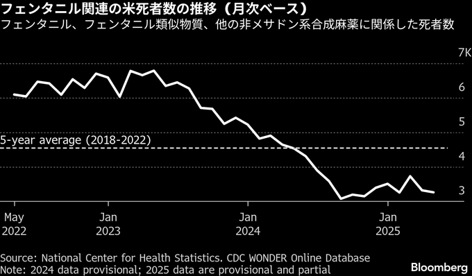 3. 薬物過剰摂取の米死者急減、フェンタニル供給網混乱が主因も-研究